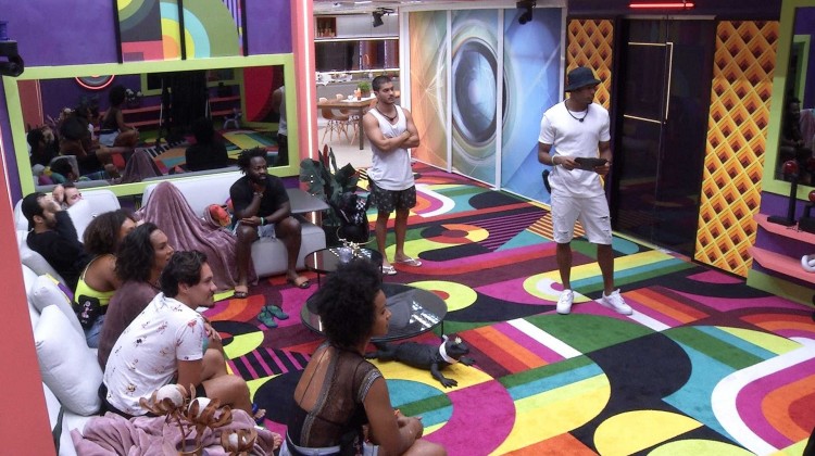 Todos os brothers vão para a sala da casa do BBB 22 para participar de uma ação culinária do TikTok. O Líder da semana, Paulo André, lê as informações sobre a atividade para os colegas de confinamento: