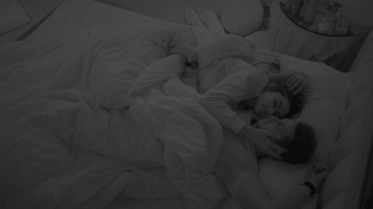 Deitados na cama do Quarto Lollipop, Lucas e Eslovênia trocam beijos e conversam sobre a relação. O brother questiona se eles seriam o casal mais careta do Big Brother Brasil.
