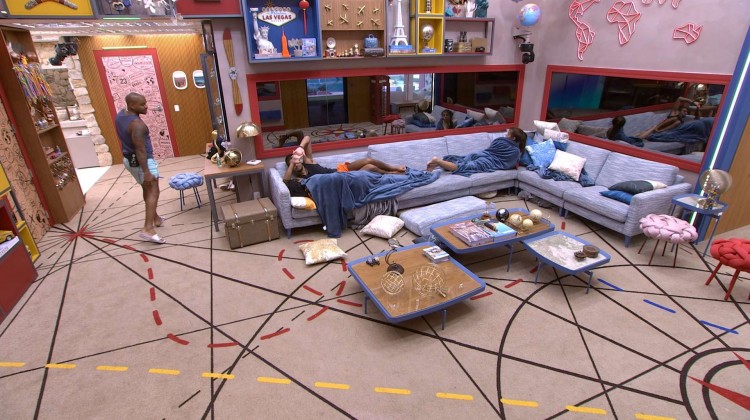Cezar, que já estava acordado, viu um aviso no telão da casa e fez um alerta: "Biel, Biel. Tá dando 'atenção' pra tu lá (...)", falou o enfermeiro. Gabriel imediatamente agradece o recado e Cezar vai em direção ao banheiro, mas volta para a sala: "Deve ser pros três [o aviso]. Pra Key também (...) Sarinha, pra vocês não tomarem estalecada à toa, viu. Acho que não pode dormir. Se tomar, fo.... Acabou o Poder Curinga. Querem sentar não?", sugere o baiano.